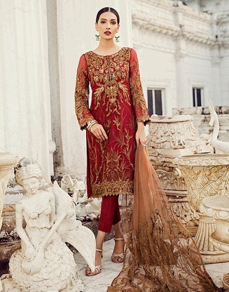 SKU: Suit Flaw Red SR-SHUN-457 Categories: Bridal Wear, Chiffon, Party Wear, Sales, Unstitched