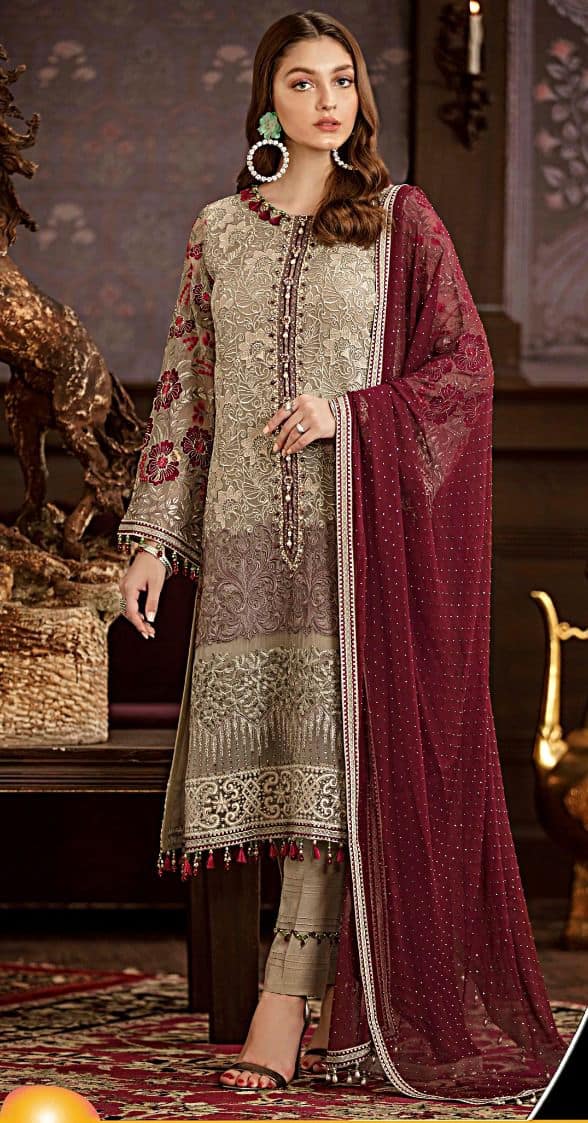 SKU: Suit Golden Brown SR-SHUN-452 Categories: Bridal Wear, Chiffon, Party Wear, Sales, Unstitched