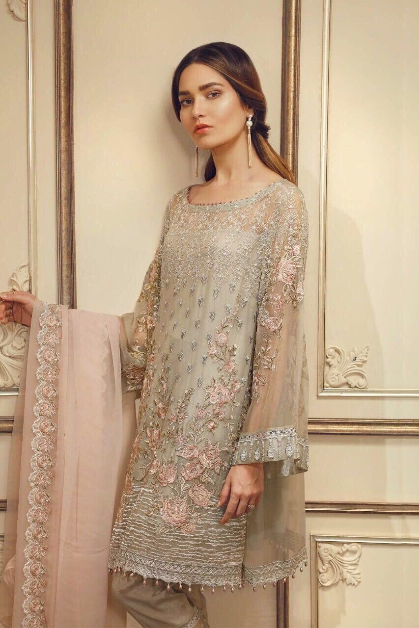 SKU: Suit Honey Grey SR-SHUN-460 Categories: Bridal Wear, Chiffon, Party Wear, Sales, Unstitched