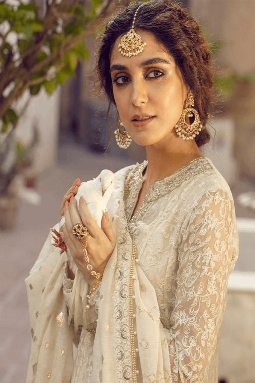 Straight long shirt with embroidered neckline border and sleeves paired with matching pants with embroidered border and embroidered dupatta