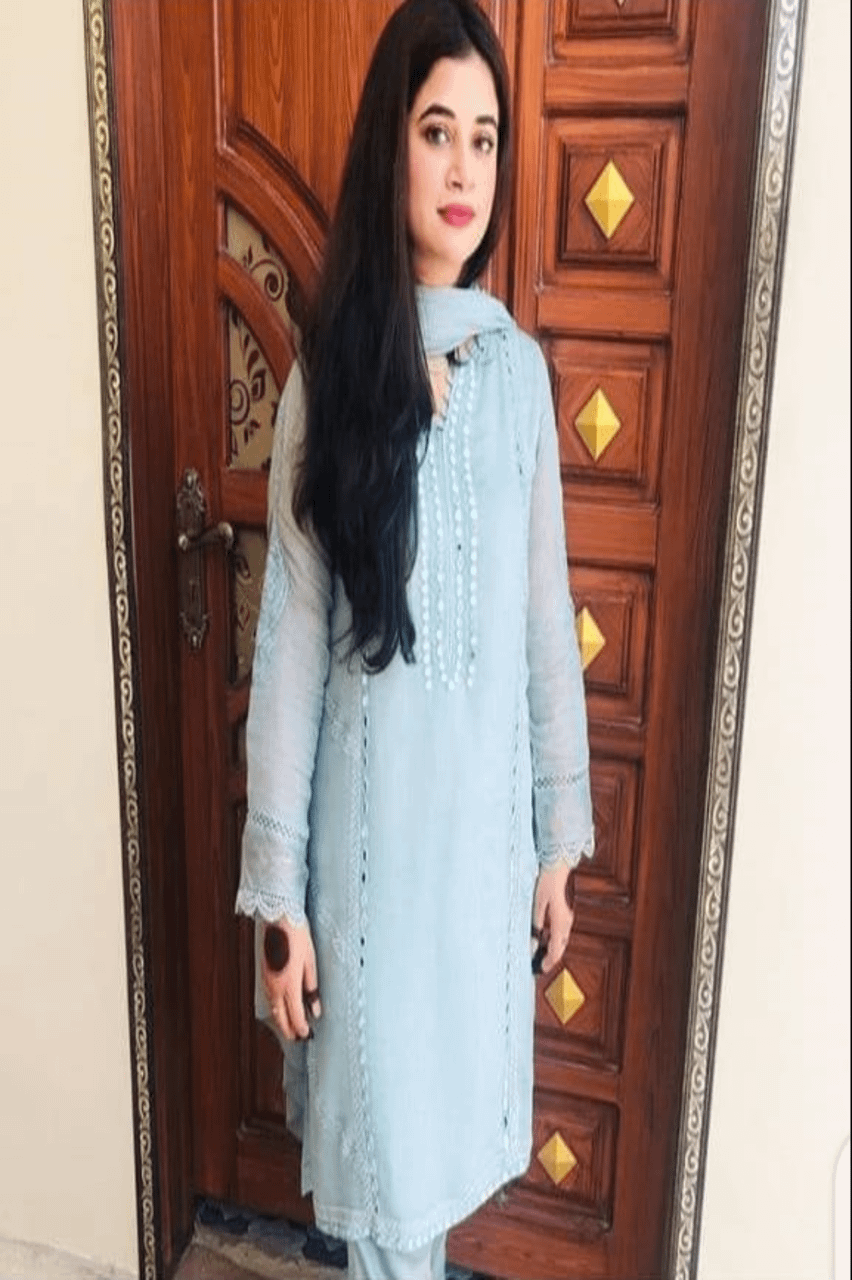 Straight long shirt with embroidered neckline border and sleeves paired with matching pants with embroidered border and embroidered dupatta