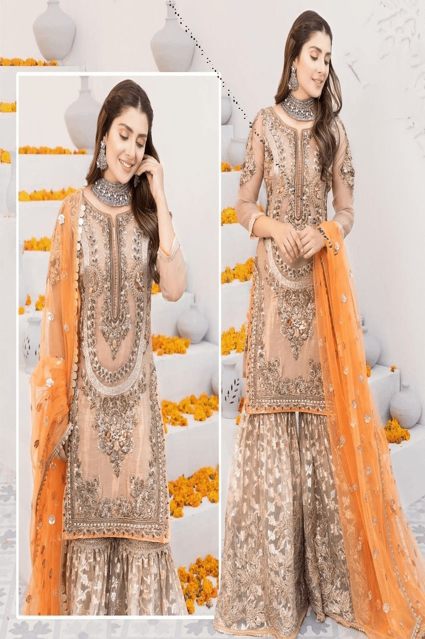 SKU: Suit Sunset Brown SR-SHUN-444 Categories: Bridal Wear, Net, Party Wear, Sales, Unstitched