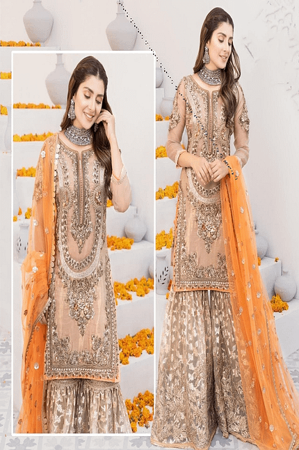 Straight long shirt with embroidered neckline border and sleeves paired with matching pants with embroidered border and embroidered dupatta