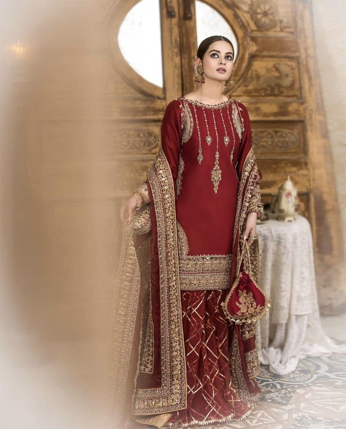 SKU: Suit Venetian Maroon SR-SHUN-165 Categories: Bridal Wear, Net, Party Wear, Sales, Unstitched